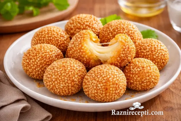 • Kroketiće uvaljajte u susam i pržite ih u dubokom ulju dok ne porumene.