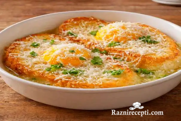 Italijanska supa Paveze sa poširanim jajima i parmezanom